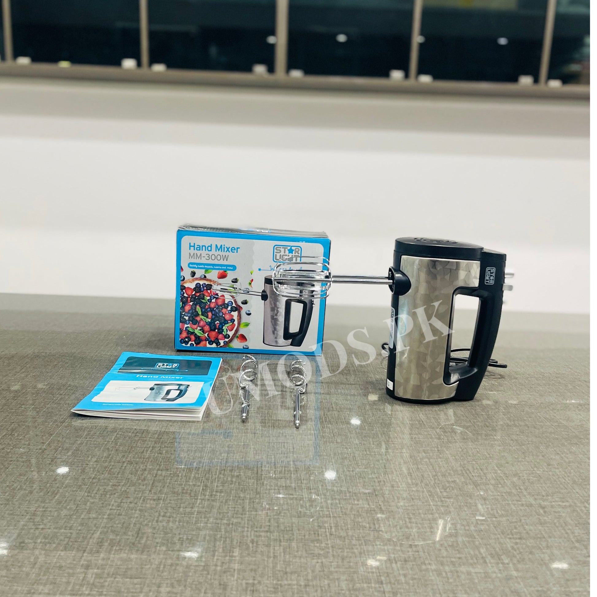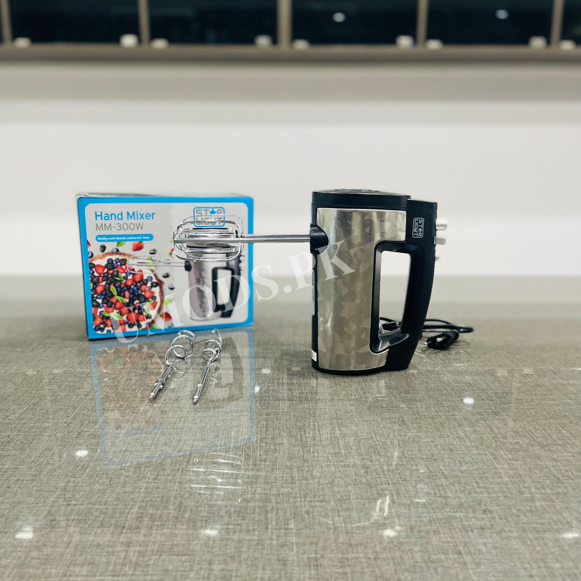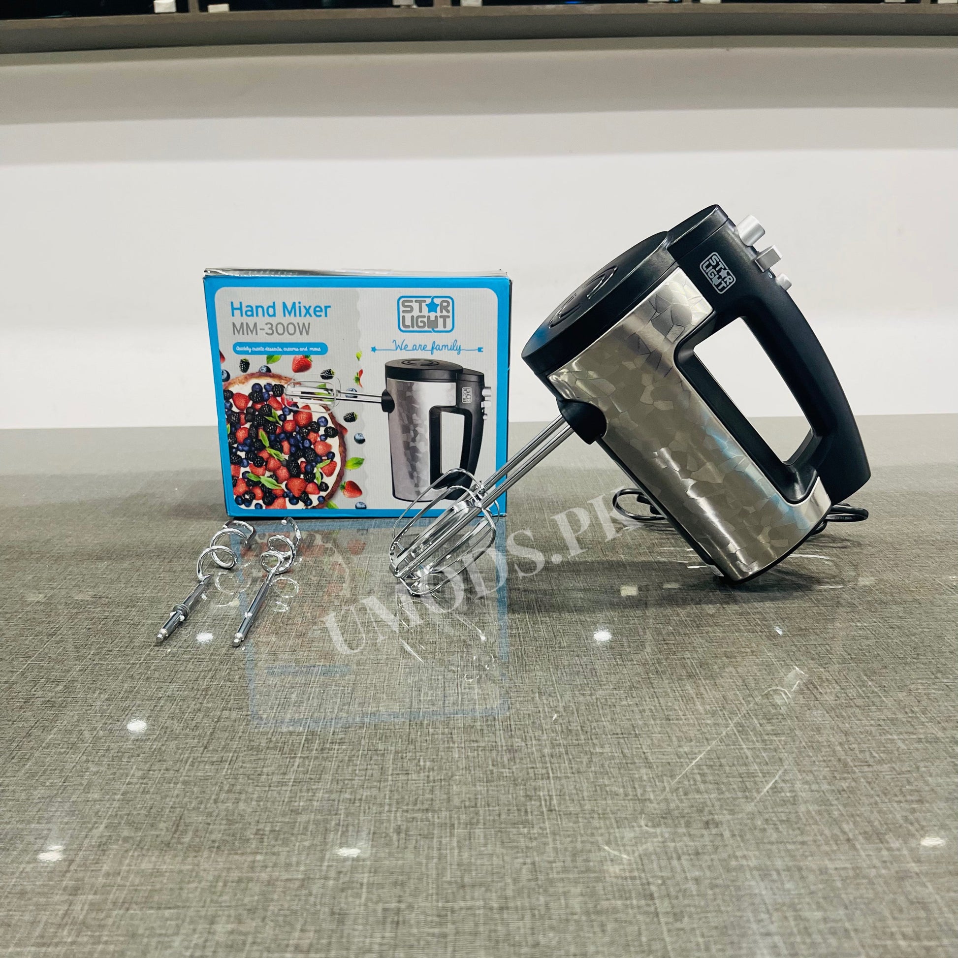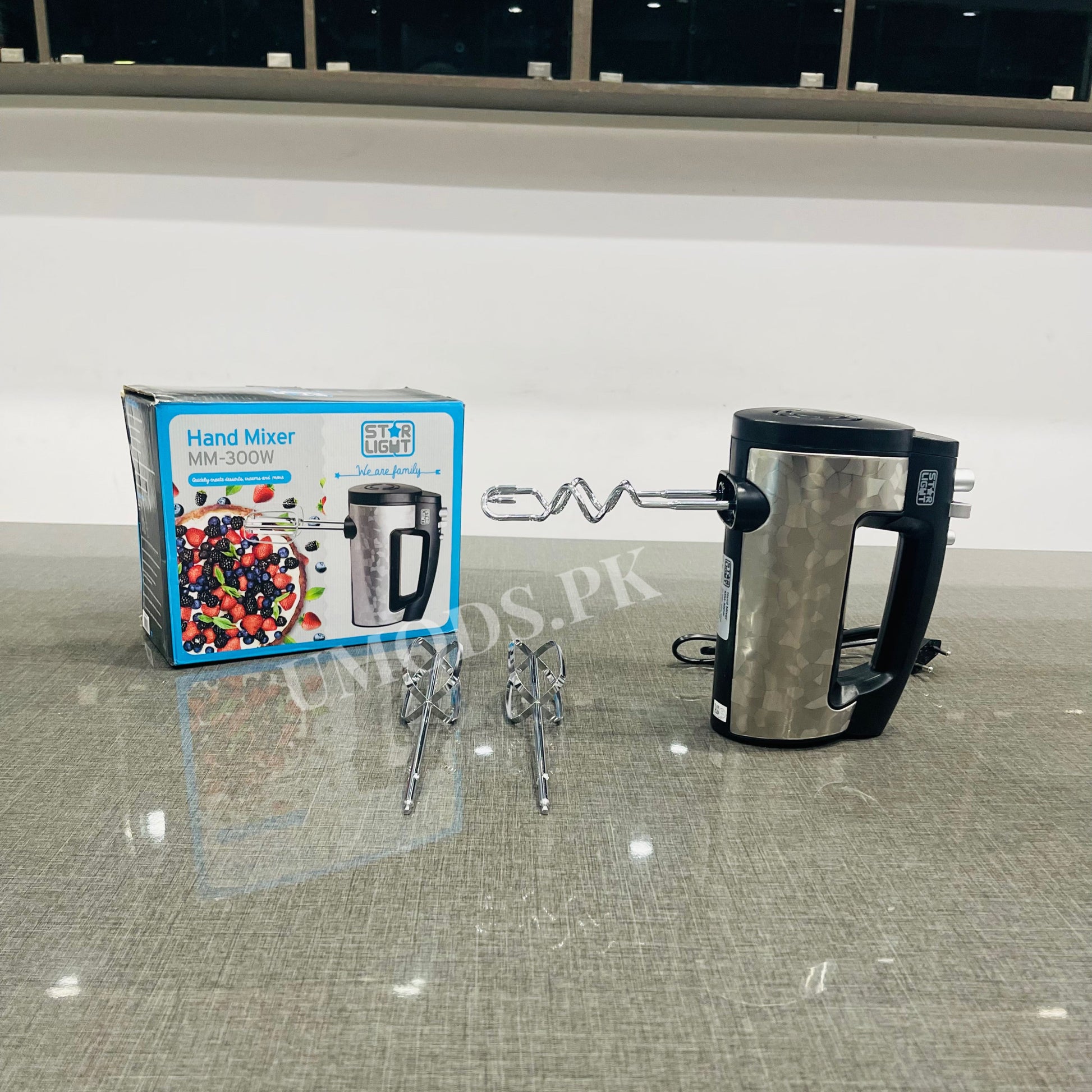 Upgrade your kitchen with the Star Light MM-300W Hand Mixer, designed to make baking and cooking effortless and enjoyable. With its powerful 300W motor, sleek stainless steel body, and multiple speed settings, this hand mixer is perfect for beating, whipping, and kneading a variety of ingredients with ease.