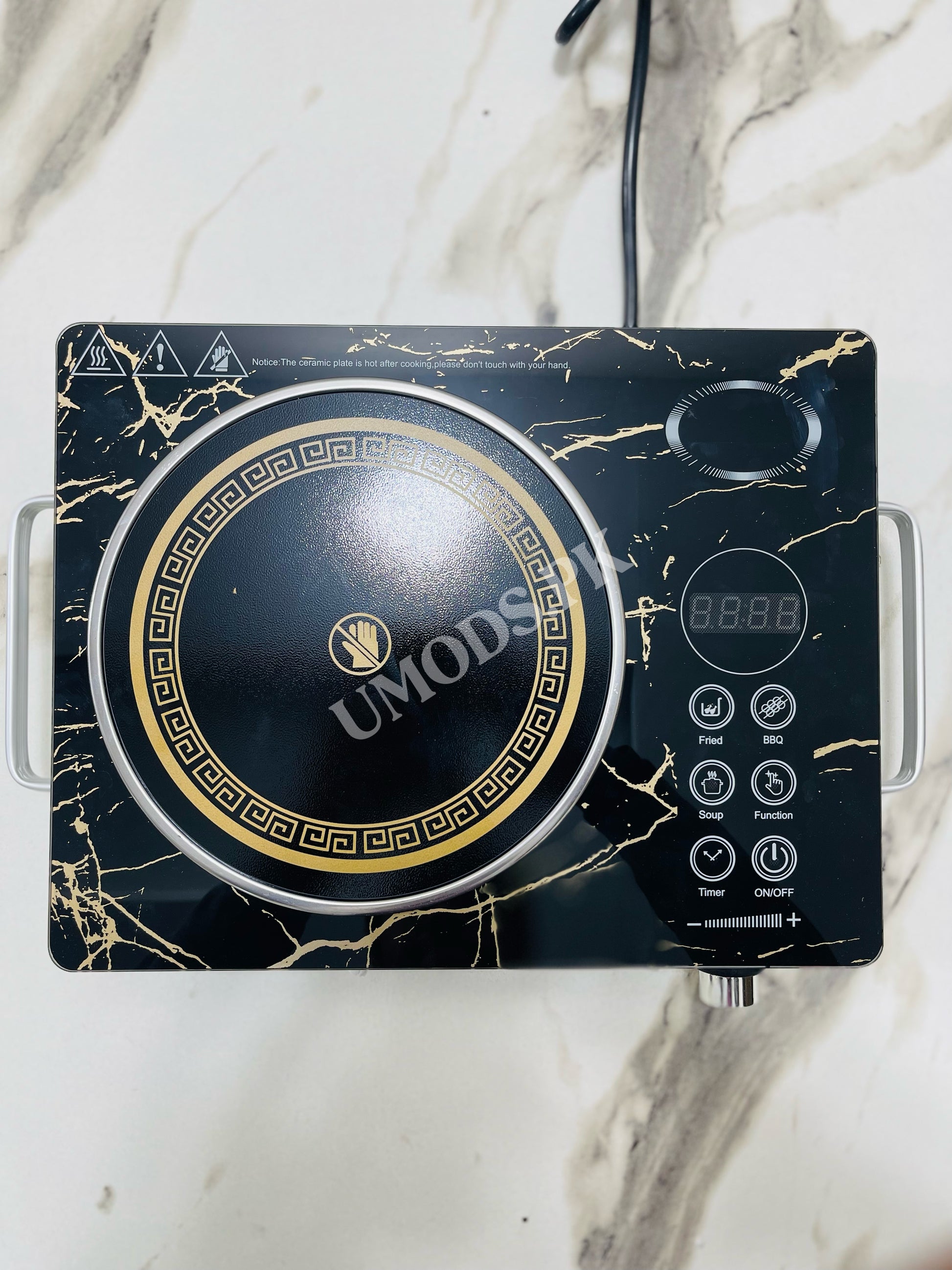 This infrared cooker is compatible with multiple types of cookware, including stainless steel, aluminum, non-stick, and cast iron, giving you complete flexibility in your kitchen. Built-in safety features such as overheat protection and auto shut-off ensure worry-free use at all times.
