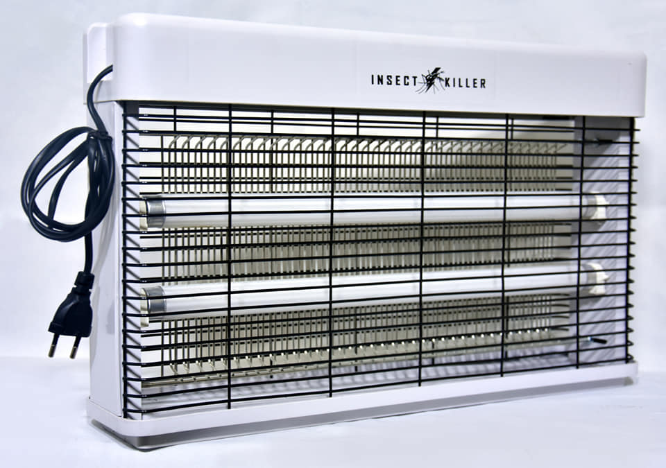 This electronic insect killer emits 365 mm of light through a 30W fluorescent lamp to attract all kinds of flying insects, such as mosquitoes, moths or mosquitoes. They can be electrified if they touch a metal network that has an internal voltage of up to 2000 V.